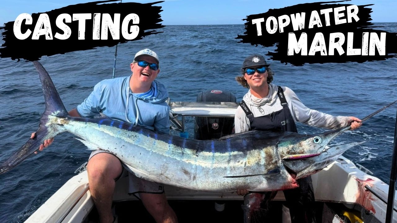 Rather than employing conventional live-baiting or trolling tactics, the crew targeted visible striped marlin with topwater stickbaits, exploiting the fish's aggressive feeding behaviour around concentrated bait balls.